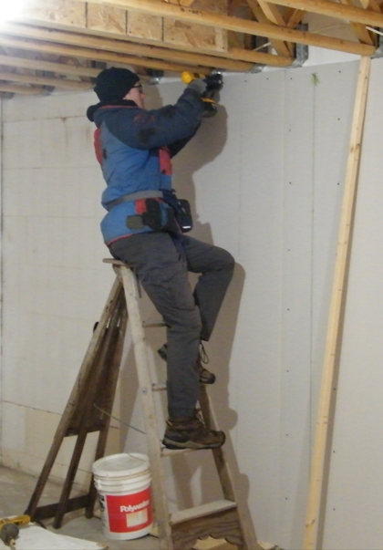 It's drywall time. Nephew Angus learning on the job.